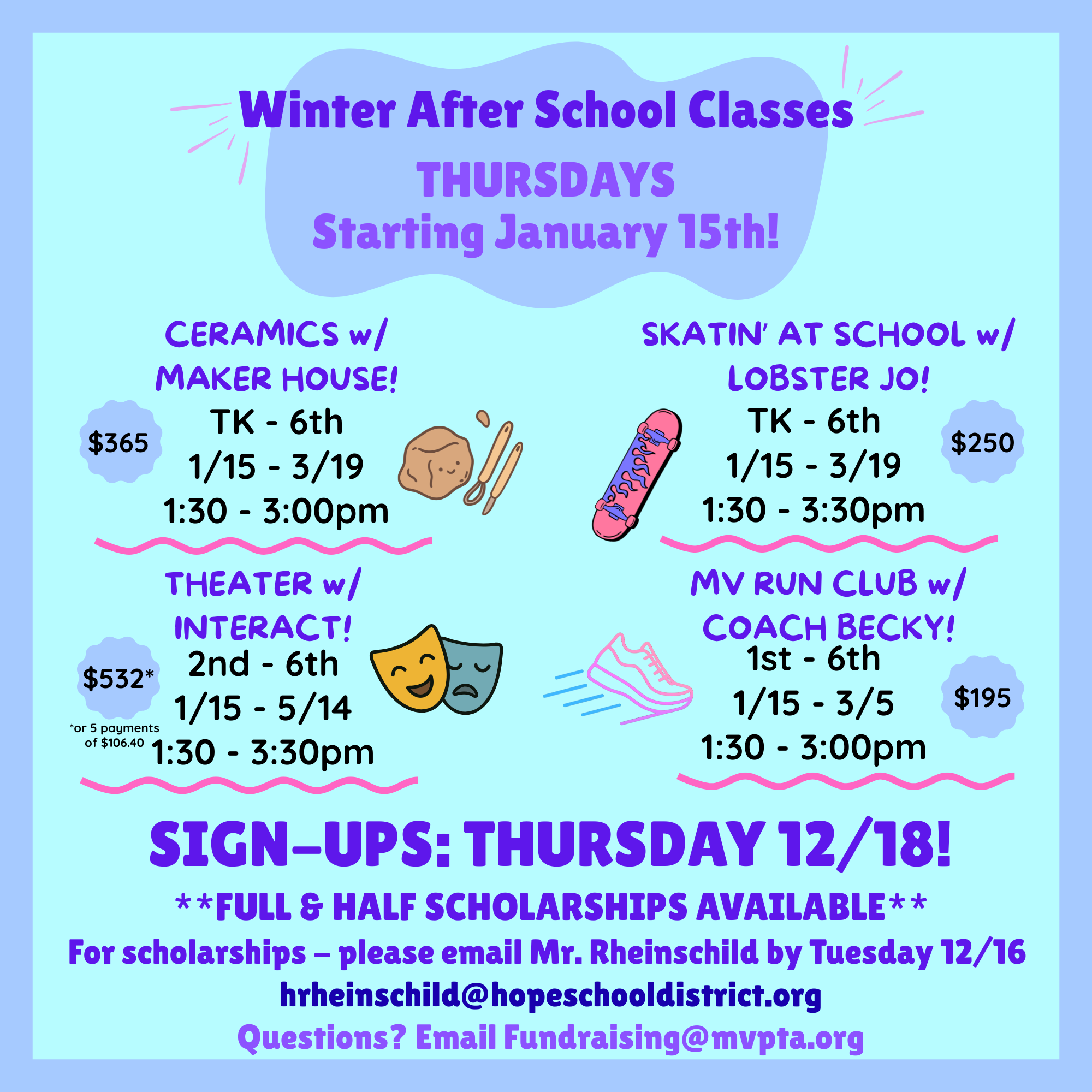 After School Classes 〰️ After School Classes 〰️ After School Classes 〰️ Currently: Winter SessionComing Soon: Spring Session, April 9th - June 3rd
